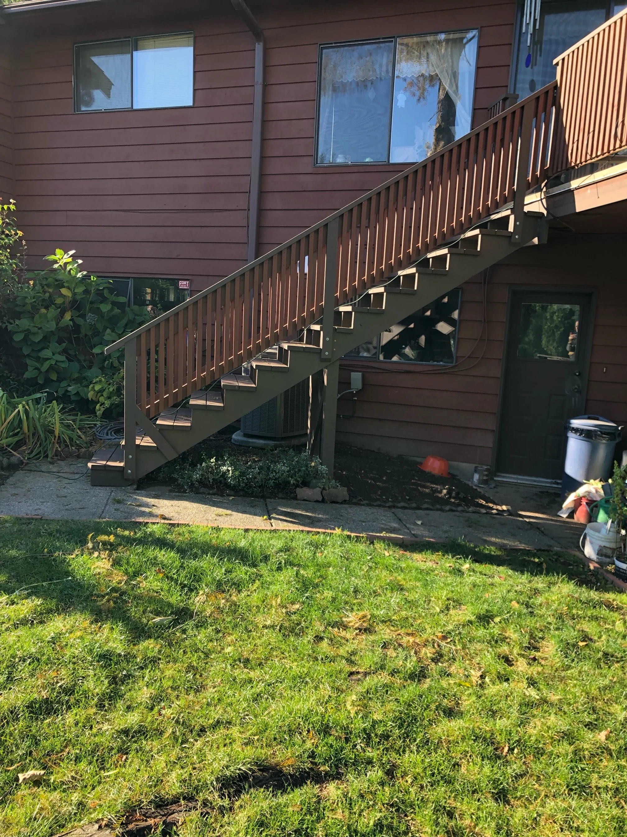 After - Replaced stairs and landing off back deck. New footings were required to re-establish level stair assembly.